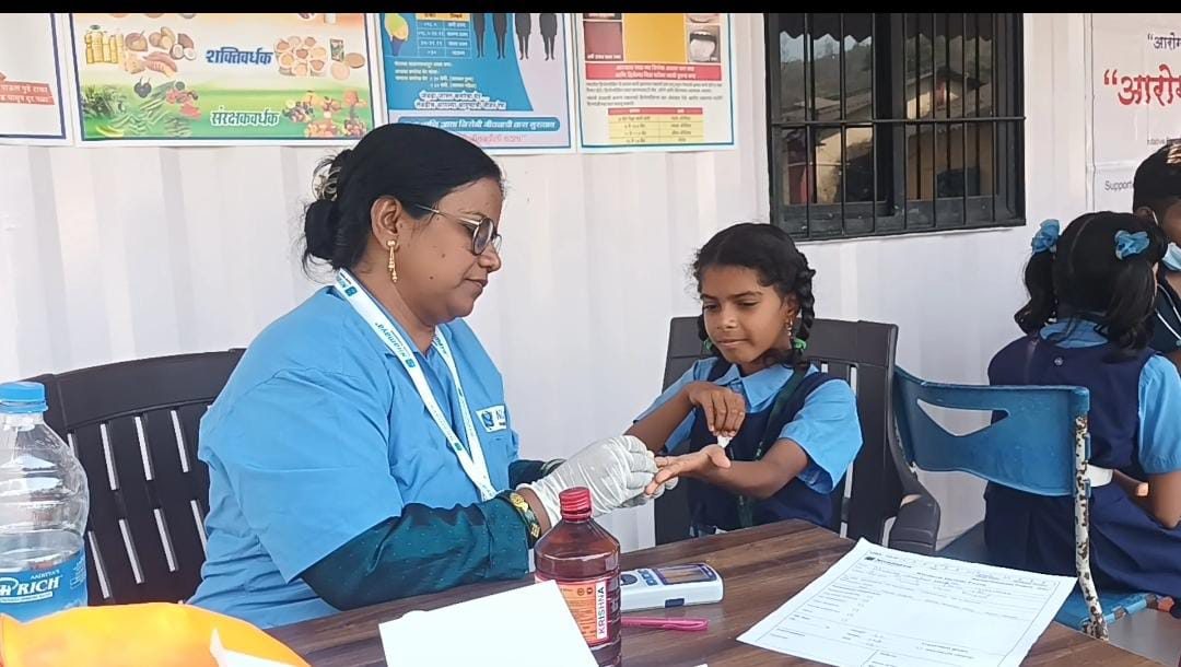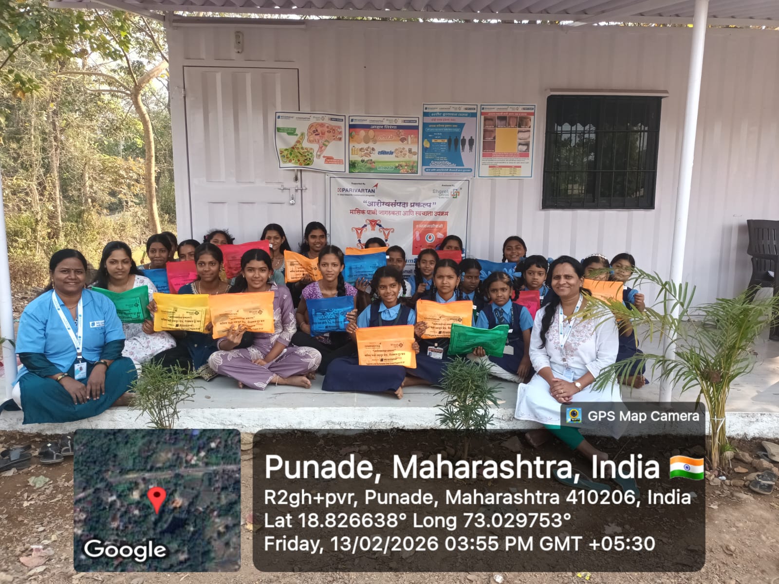 Four school health camps were also organized for 410 students, including eye, dental, and general health examinations. A Menstrual Health & Hygiene Awareness Program supported 218 adolescent girls through awareness sessions and menstrual hygiene kits. A School Health & Hygiene Corner was successfully established at Dr. Karmaveer Bhaurao Patil Vidyalaya, Pirkon village, benefiting 356 students, along with the installation of a sanitary napkin vending machine.